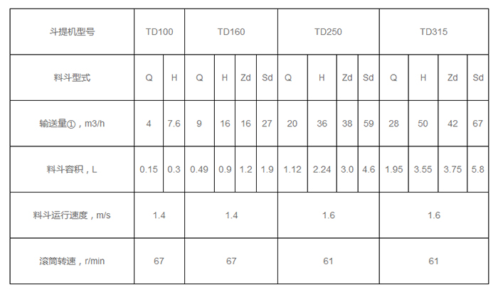 TD斗式提升機(jī)技術(shù)參數(shù):